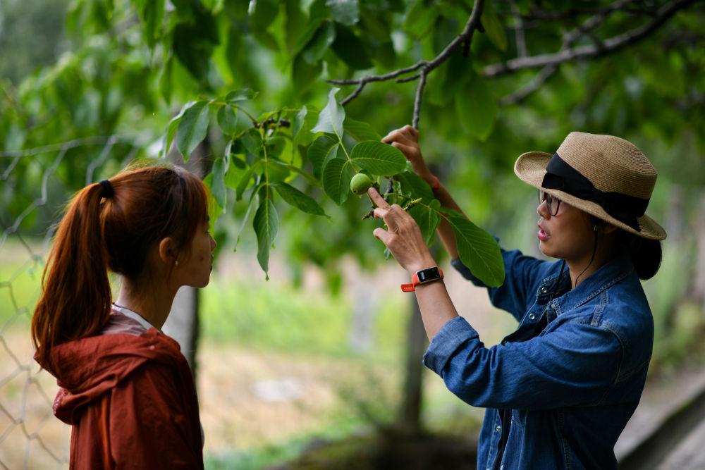2023年7月27日,在西藏加查縣安繞鎮(zhèn)熱果村,長江大學西藏高原核桃產(chǎn)業(yè)研究所劉利平博士(右一)在一株古核桃樹下給學生開展現(xiàn)場教學。2021年3月,湖北省“十四五”科技援藏項目啟動,劉利平跟隨團隊奔赴高原,全身心投入到當?shù)亓挤N選育、繁育以及栽培管理等工作之中。“十四五”期間,當?shù)匮亟鷳B(tài)走廊種植項目種植核桃10余萬株,既固土防沙,又為當?shù)厝罕妿硎找?,實現(xiàn)生態(tài)效益與經(jīng)濟效益雙贏。
