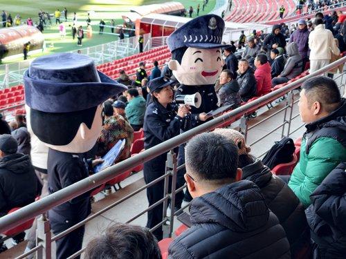 沈陽(yáng)鐵西民警在鐵西體育場(chǎng)維持秩序。
