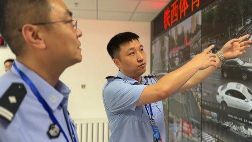 沈陽(yáng)鐵西民警在監(jiān)控系統(tǒng)前查看鐵西體育場(chǎng)周邊情況。