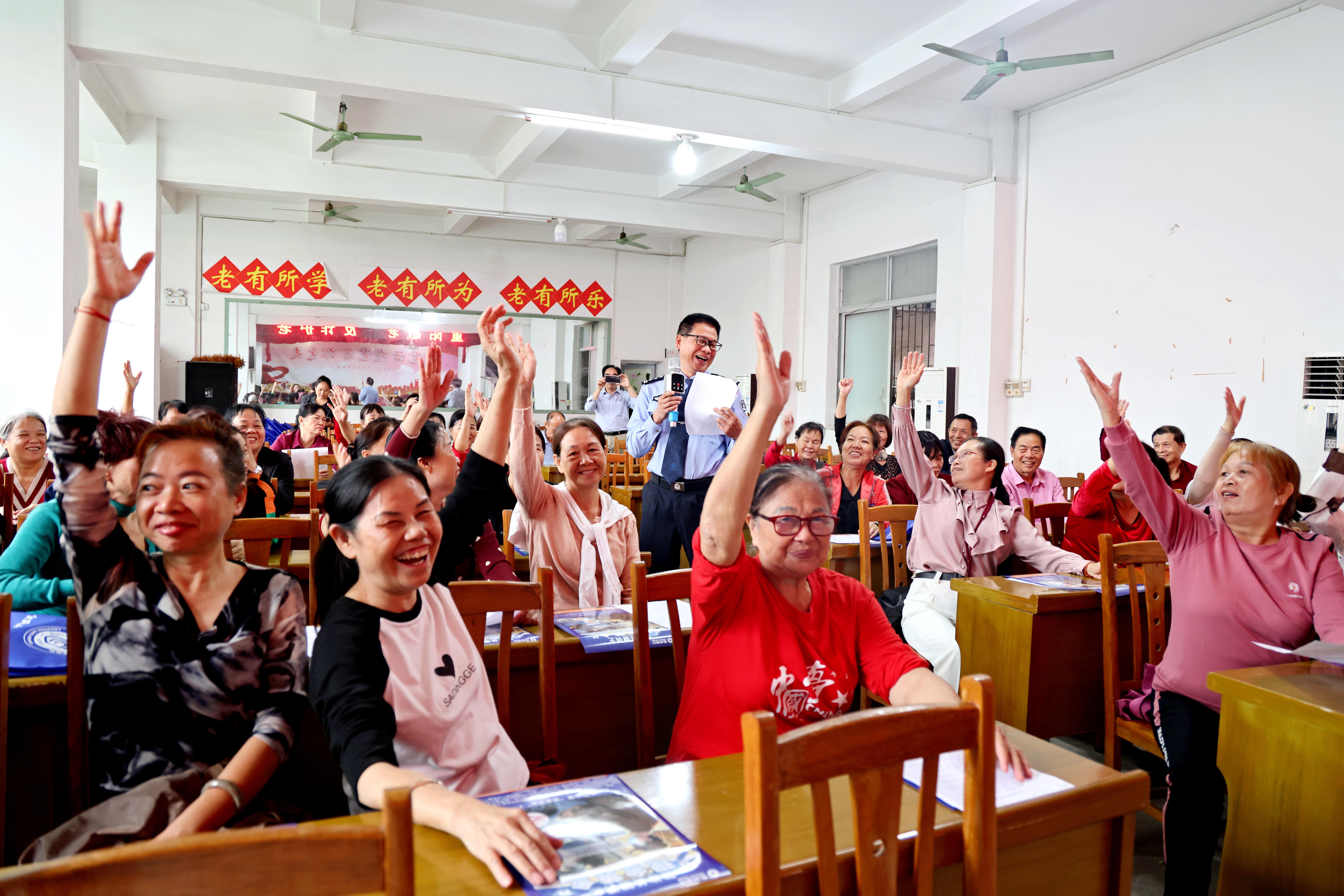10月28日,廣西壯族自治區(qū)玉林市陸川縣公安局組織宣傳民警走進(jìn)陸川縣老年大學(xué),與該?!袄蠈W(xué)員”們攜手,開展了一場集趣味性、互動(dòng)性與教育性于一體的反詐宣傳活動(dòng),讓老年朋友在歡聲笑語中學(xué)習(xí)知識,守好“養(yǎng)老錢”。