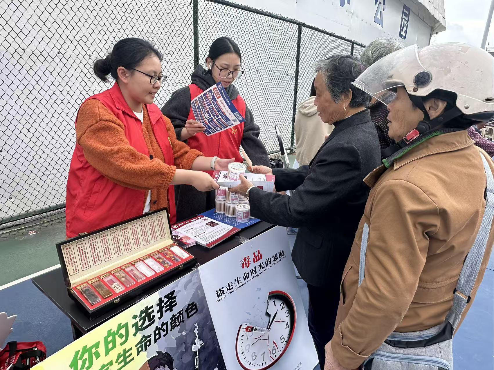 活動(dòng)還現(xiàn)場(chǎng)設(shè)置多個(gè)宣傳服務(wù)點(diǎn)位,平安法治辦公室工作人員與“橋姥爺”“錢塘媽媽”“錢塘灣嫂”等志愿者隊(duì)伍共同設(shè)立宣傳攤位,通過發(fā)放宣傳手冊(cè)、展示仿真毒品模型、講解典型案例等方式,開展多主題宣教,合力織密老年人“安全防護(hù)網(wǎng)”。禁毒社工耐心提醒老年朋友謹(jǐn)遵醫(yī)囑、合理用藥,不輕信所謂“養(yǎng)生補(bǔ)品”“特效藥”,定期清理家中過期藥品,防范藥物濫用風(fēng)險(xiǎn);“錢塘灣嫂”志愿者發(fā)放交通安全宣傳頁,強(qiáng)調(diào)“一盔一帶”重要性;反詐宣傳員則聚焦養(yǎng)老詐騙常見手法,揭露“保健品詐騙”“投資返利”等常見手段,幫助老人識(shí)別騙局,守好他們的“錢袋子”。此外,活動(dòng)還融入國家安全、反邪教等平安創(chuàng)建內(nèi)容,全面提升老年群體的法治意識(shí)和自我保護(hù)能力。