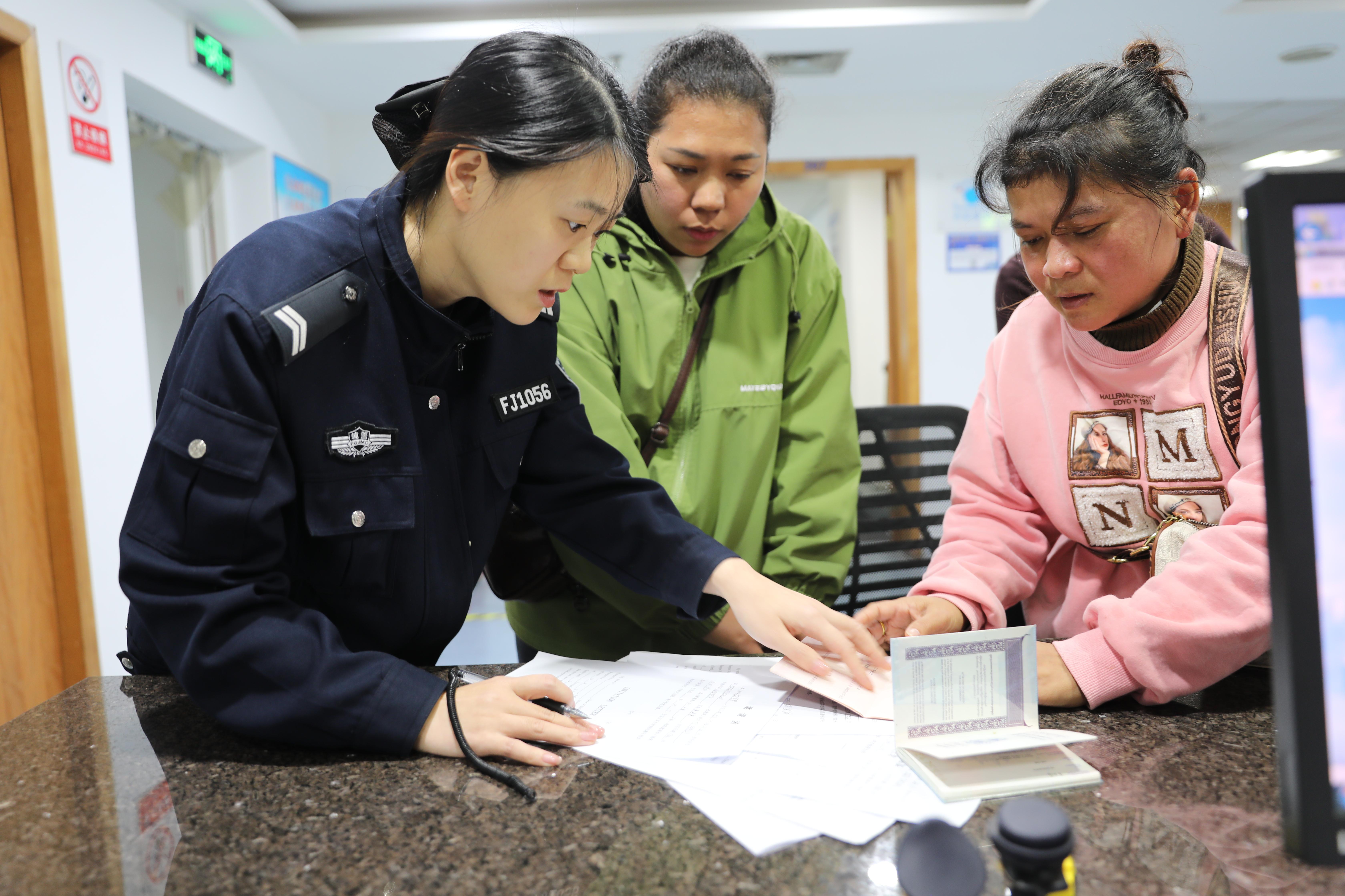 “沒想到在縉云就能辦續(xù)簽,不用請假跑麗水市區(qū),省了2小時車程還少花路費(fèi),太貼心了!”10月30日下午,縉云縣仙都街道鐵城村村民麻建華陪著外籍妻子剛辦完簽證業(yè)務(wù),就對著民警連連點(diǎn)贊?,F(xiàn)場9位外籍人士正有序填寫表格、提交材料、核對信息,還有20多人圍著民警咨詢簽證政策、居留許可辦理等問題。