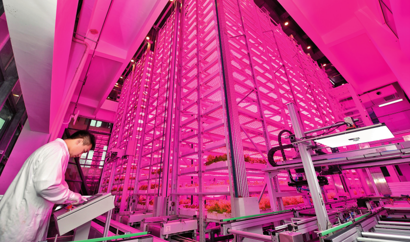 在位于四川天府新區(qū)的中國農(nóng)業(yè)科學(xué)院都市農(nóng)業(yè)研究所超高層無人化垂直植物工廠內(nèi),科技人員在調(diào)試軟件(2024年10月16日攝) 劉坤攝/本刊