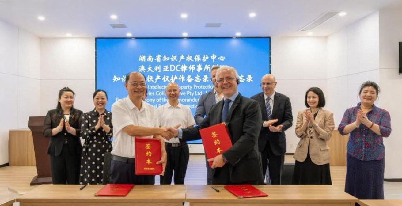 9月2日,湖南省知識(shí)產(chǎn)權(quán)保護(hù)中心、長(zhǎng)沙知識(shí)產(chǎn)權(quán)保護(hù)中心與澳大利亞DCC律師事務(wù)所簽訂知識(shí)產(chǎn)權(quán)保護(hù)合作備忘錄,并聯(lián)合開(kāi)展涉外知識(shí)產(chǎn)權(quán)保護(hù)交流分享活動(dòng)。湖南省市場(chǎng)監(jiān)督管理局(知識(shí)產(chǎn)權(quán)局)二級(jí)巡視員何愛(ài)文出席活動(dòng)。