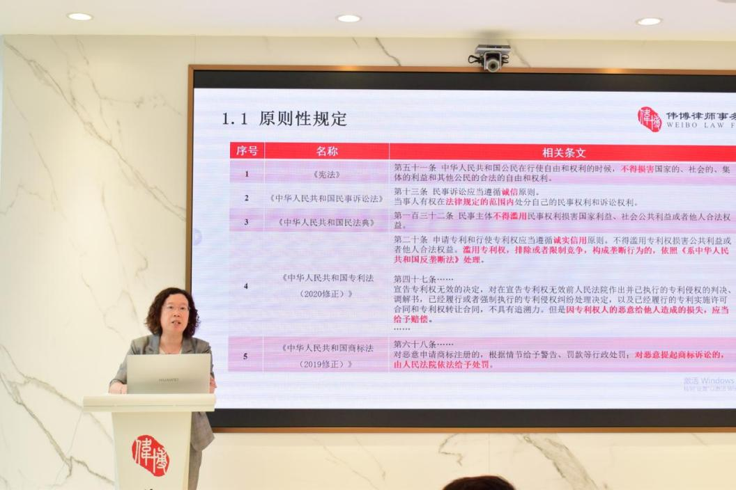 2025年9月5日,由北京市偉博律師事務(wù)所(以下簡稱“偉博律所”)主辦的“知識(shí)產(chǎn)權(quán)惡意訴訟疑難問題與實(shí)務(wù)研究”講座在北京CBD陽光金融中心偉博律所北京總部舉辦。偉博律所高級(jí)合伙人范秀霞律師擔(dān)任主講人,從法律規(guī)定、認(rèn)定標(biāo)準(zhǔn)、司法實(shí)踐、國際比較及實(shí)務(wù)建議五個(gè)方面系統(tǒng)梳理了惡意訴訟的現(xiàn)狀與挑戰(zhàn)。