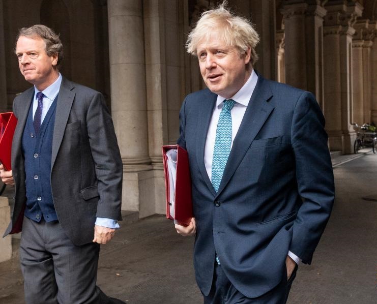 12月15日,在英國倫敦,英國首相鮑里斯·約翰遜(左二)參加完內(nèi)閣會議后返回首相府。
