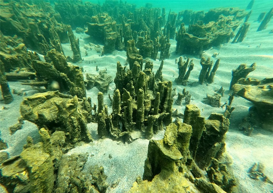 人民網訊 當地時間8月8日,土耳其比特利斯省,凡湖水下發(fā)現新微生物巖。