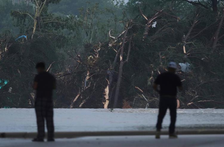 7月4日,在美國得克薩斯州英格勒姆市,人們在瓜達(dá)盧普河沿岸查看。新華社/美聯(lián)