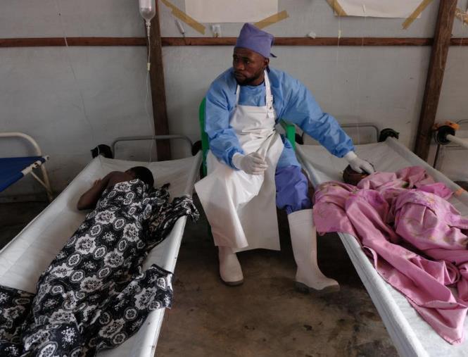 7月10日,在剛果(金)首都金沙薩市郊的一座霍亂治療中心,醫(yī)護人員照料病患。