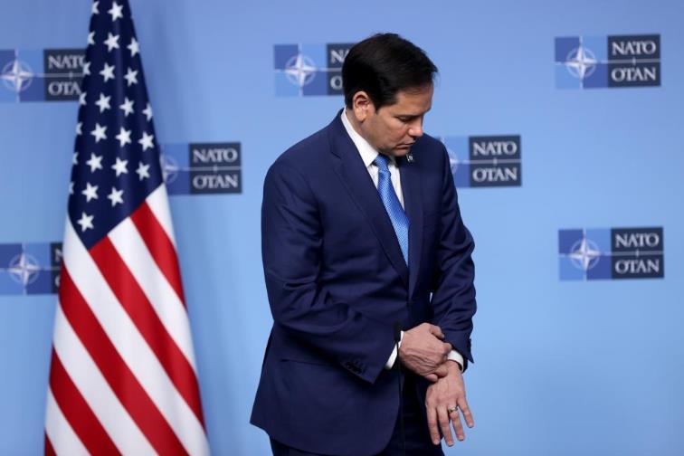 這是4月3日在比利時(shí)布魯塞爾北約總部拍攝的美國(guó)國(guó)務(wù)卿魯比奧資料照片。新華社記者趙丁喆攝