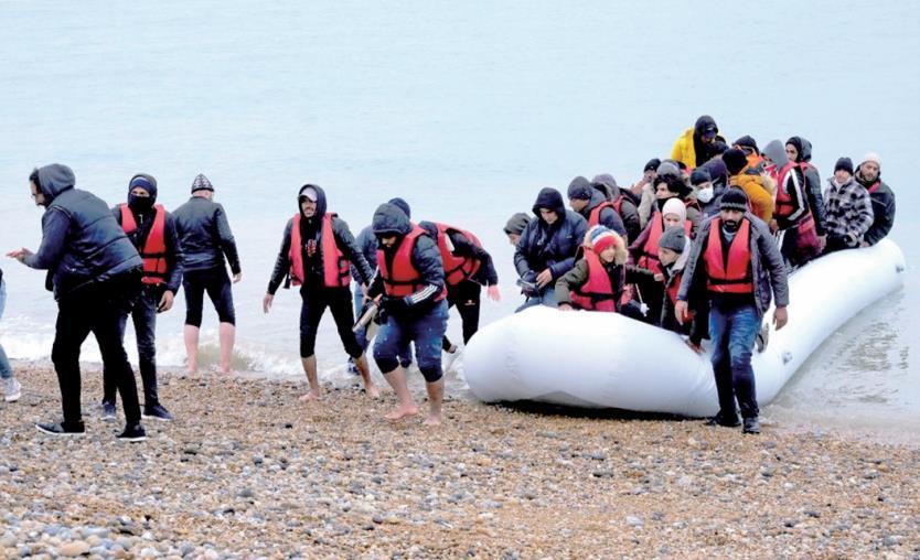 圖為一艘偷渡船抵達(dá)英國(guó)鄧杰內(nèi)斯角海岸。新華社發(fā)