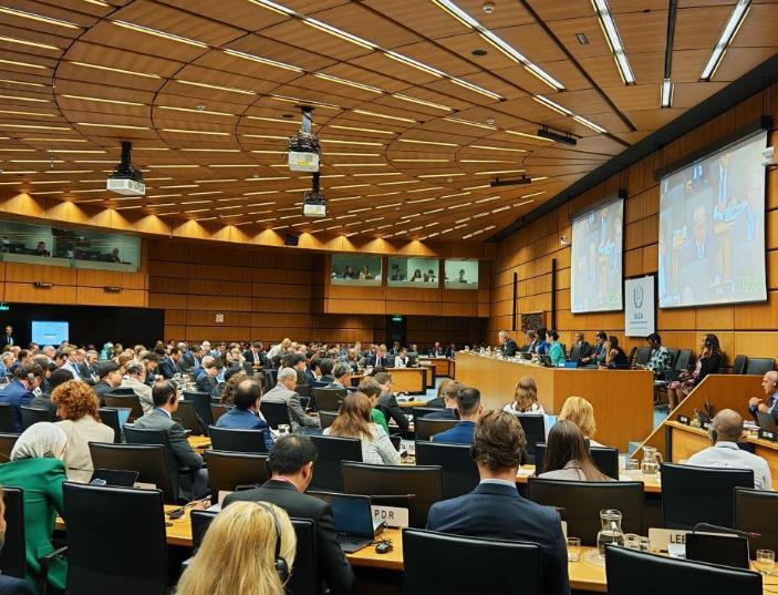 9月10日在奧地利維也納拍攝的國際原子能機(jī)構(gòu)理事會會議現(xiàn)場。新華社發(fā)(中國常駐維也納聯(lián)合國代表團(tuán)供圖)