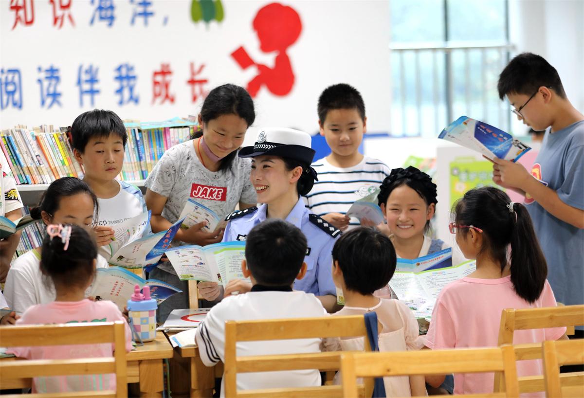 7月13日,安徽省舒城縣公安局交管大隊聯合城中派出所民警走進縣圖書館,向在此閱讀、休閑的市民宣傳交通安全知識,讓安全出行知識走近市民、貼近生活。