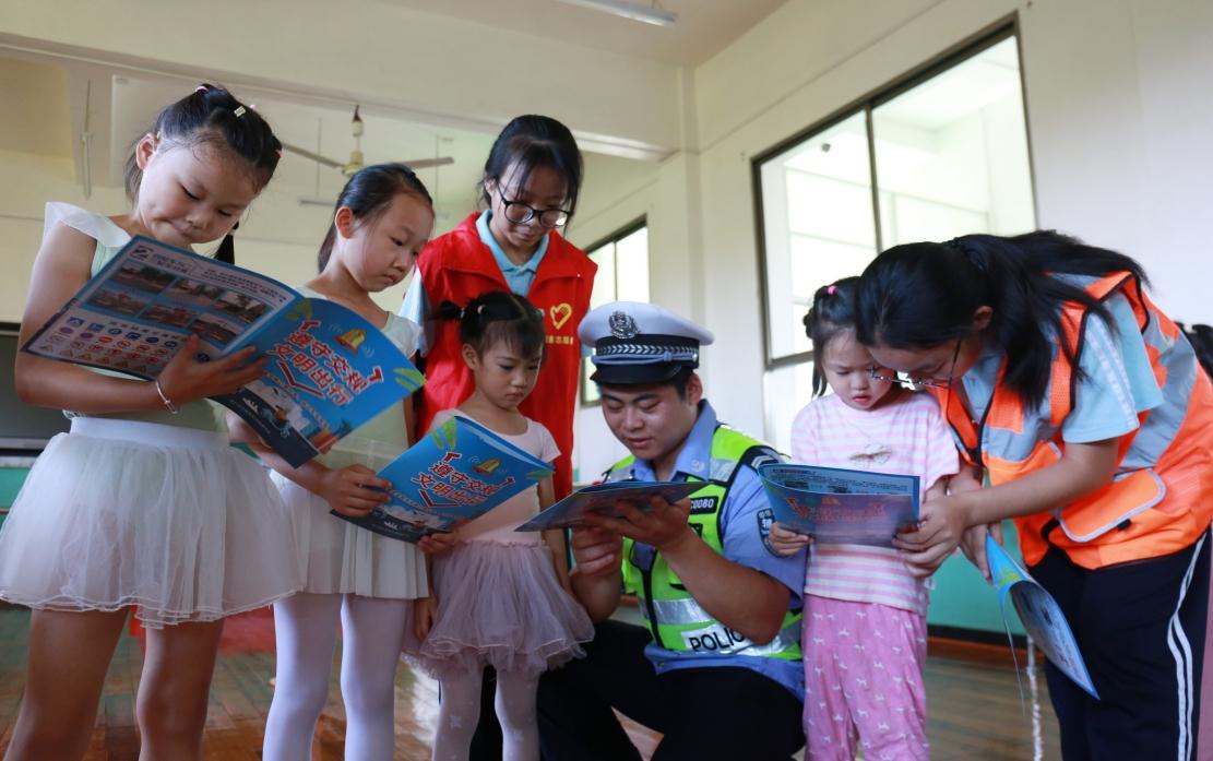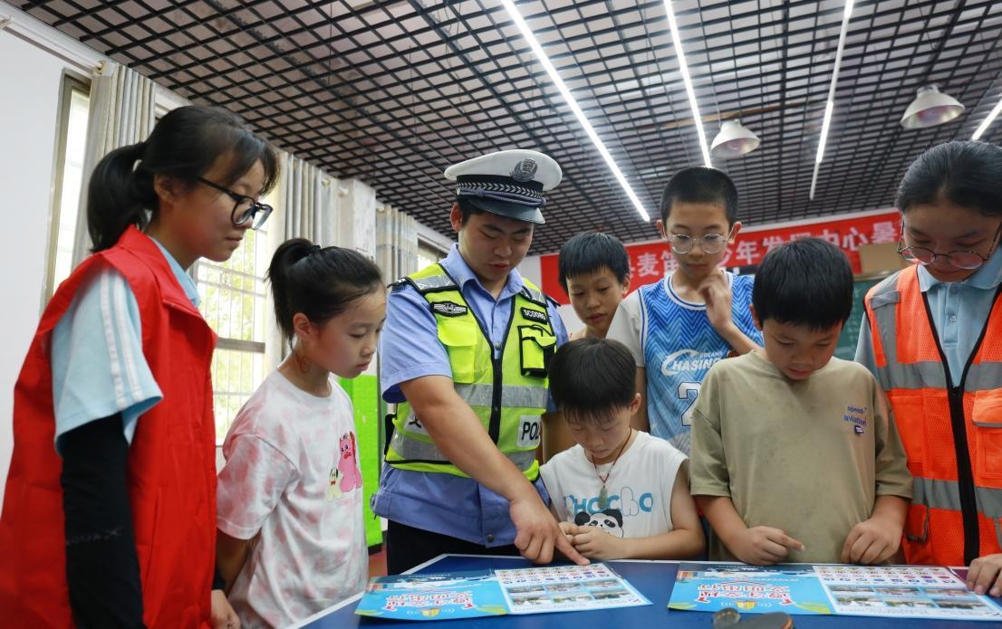 連日來(lái),江西省吉安市遂川縣公安局交警大隊(duì)組織民警和青年志愿者走進(jìn)轄區(qū)暑期興趣班,通過(guò)以案說(shuō)法、知識(shí)問(wèn)答等方式宣講交通安全知識(shí),引導(dǎo)孩子們正確識(shí)別交通標(biāo)志標(biāo)線,提升自我保護(hù)能力。圖為7月23日,民警走進(jìn)暑期興趣班宣講交通安全知識(shí)。