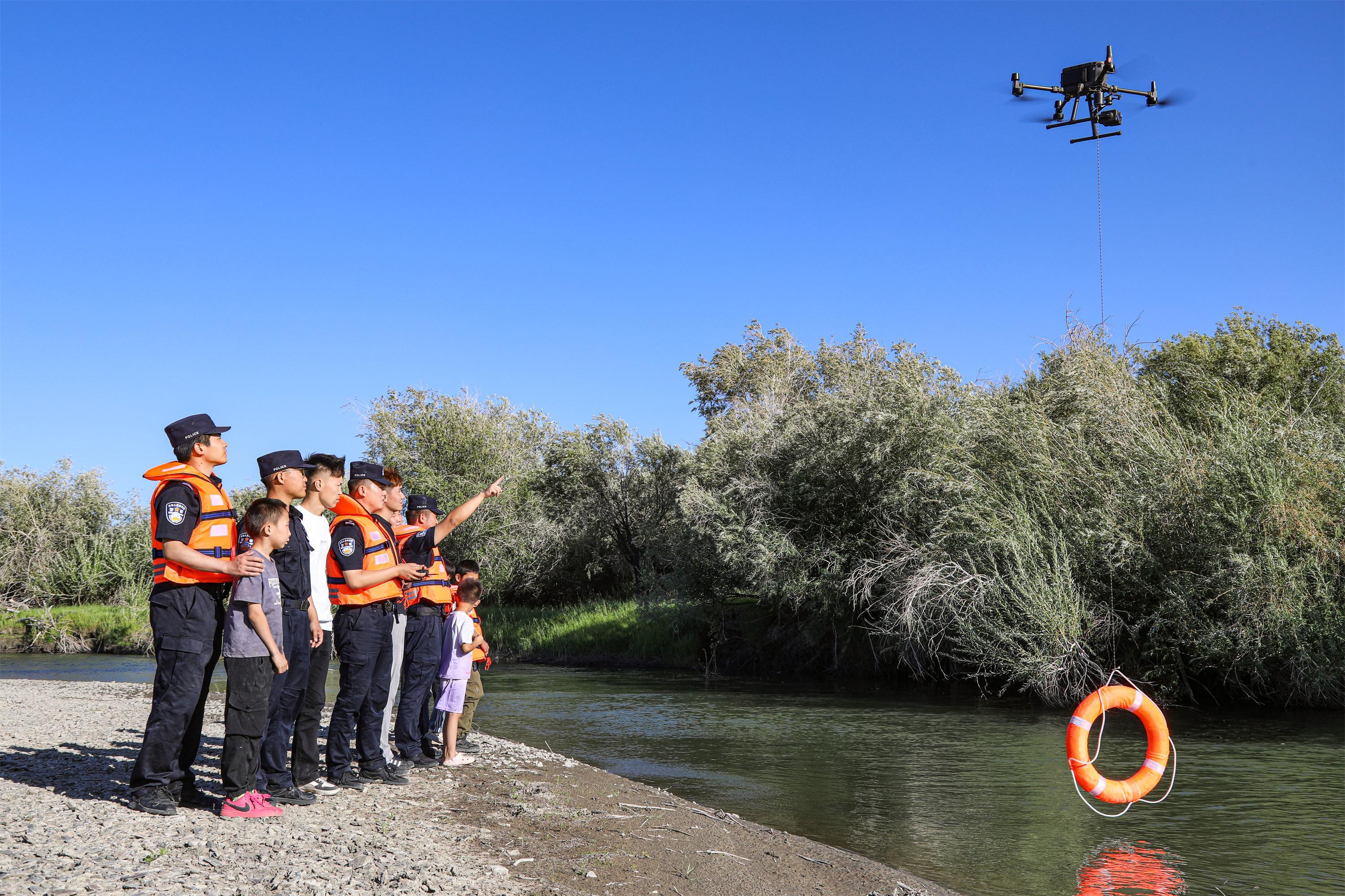為切實保障人民群眾生命安全,提升群眾安全意識,嚴(yán)防溺水事故的發(fā)生,7月22日,新疆出入境邊防檢查總站阿勒泰邊境管理支隊塔克什肯口岸邊境派出所創(chuàng)新實踐“科技+警務(wù)”模式,全面加強重點水域巡邏管控、防溺水宣傳工作。同時,民警利用無人機常態(tài)化在河流、池塘等溺水事故易發(fā)地開展巡防工作,全面筑牢夏季安全防線,用科技力量為夏季水域安全保駕護(hù)航。