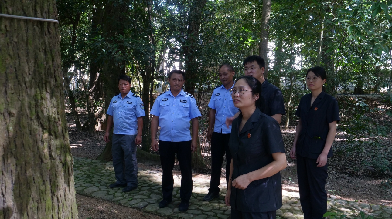 圖為8月15日,法院干警和護(hù)林員在蛟潭鎮(zhèn)古樹(shù)名木司法保護(hù)基地開(kāi)展巡查,并向群眾普及林業(yè)保護(hù)知識(shí)。