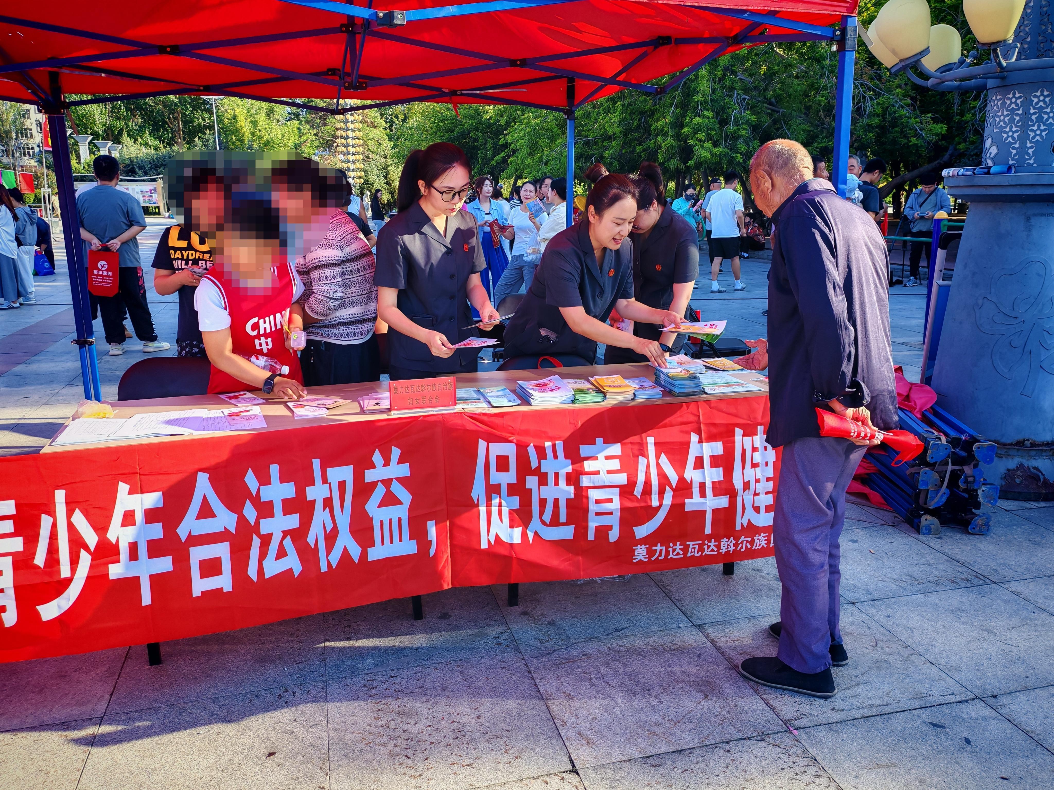 8月20日,內(nèi)蒙古自治區(qū)呼倫貝爾市莫力達(dá)瓦達(dá)斡爾族自治旗人民法院未成年人審判團(tuán)隊(duì)走進(jìn)依蘭廣場,開展未成年人保護(hù)法普法宣傳,讓法治的種子在孩子們心中“生根發(fā)芽”。