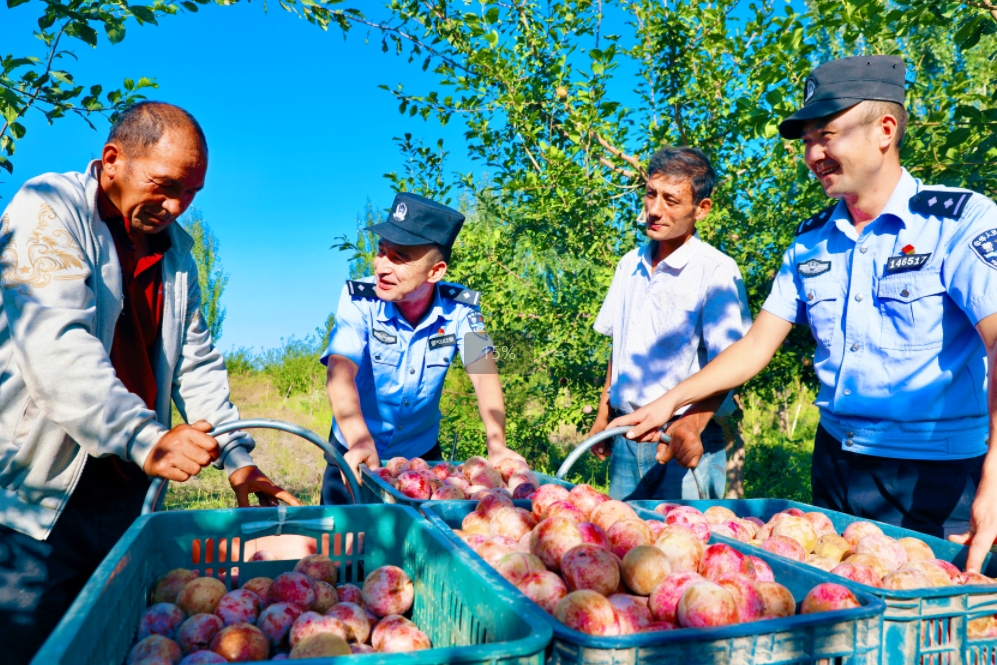 時(shí)值八月,碩果飄香,新疆溫宿縣的廣大果農(nóng)迎來水果豐收季,采摘、運(yùn)輸、銷售……呈現(xiàn)出一片繁忙景象。溫宿縣公安局將警務(wù)觸角延伸至田間地頭,扎實(shí)開展巡邏防控、矛盾化解、安全宣傳、幫助采摘等服務(wù)群眾工作,守護(hù)“致富果”,助力鄉(xiāng)村振興。