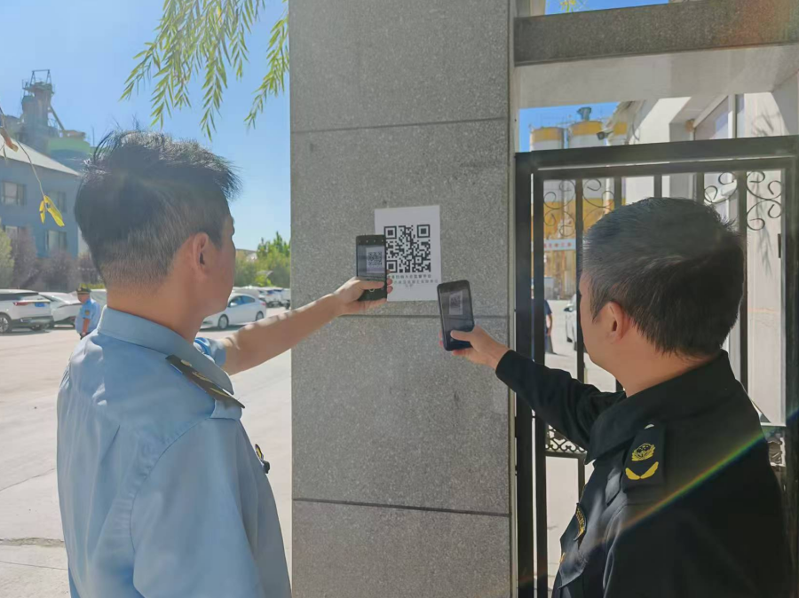 圖為察布查爾錫伯自治縣執(zhí)法部門工作人員開展“掃碼入企”聯(lián)合檢查。范如贊 攝