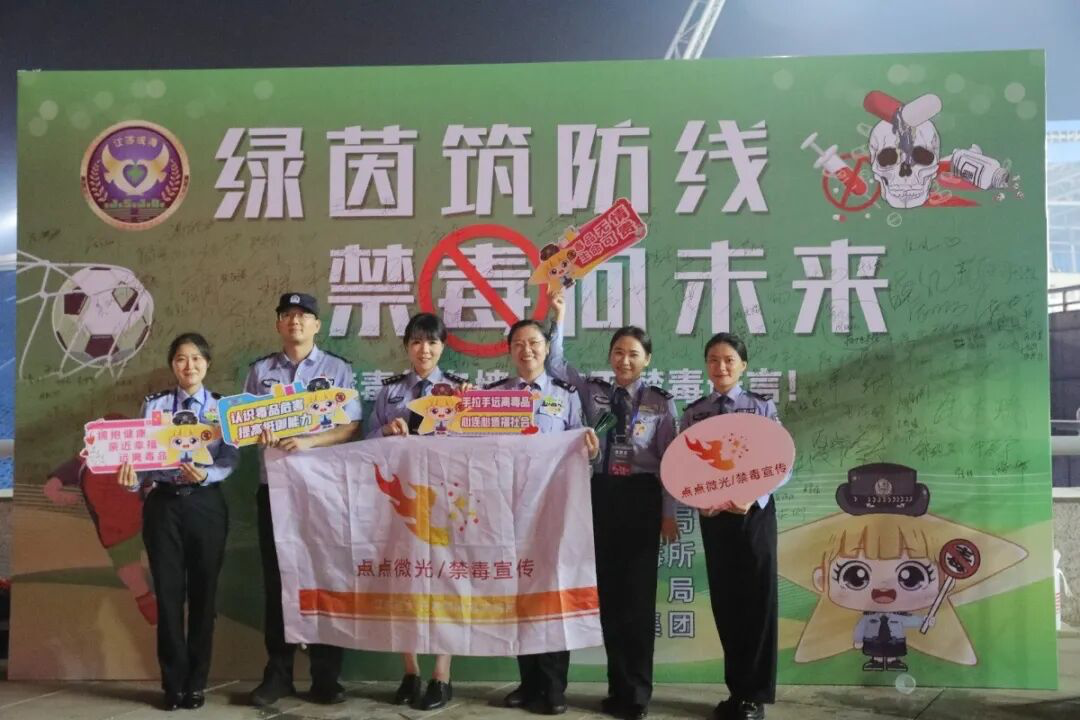 賽前球迷互動區(qū)里,江蘇省女子強(qiáng)制隔離戒毒所“點點微光”禁毒宣傳團(tuán)隊積極行動,聯(lián)合鎮(zhèn)江市體育局、鎮(zhèn)江市文化廣電和旅游局、鎮(zhèn)江市文化廣電產(chǎn)業(yè)集團(tuán)等單位,為鎮(zhèn)江、無錫球迷送上禁毒知識和禁毒文創(chuàng)?!包c點微光”禁毒宣傳吉祥物“星星”也驚喜現(xiàn)身,與球迷代表在禁毒宣誓墻上寫下禁毒承諾,共同喊出“鎮(zhèn)江無錫,共筑防線”的青春無毒誓言。