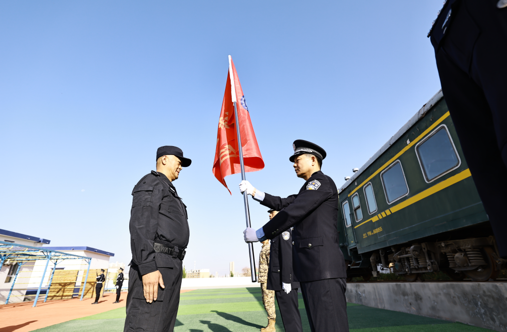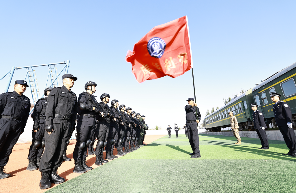 為加快推進(jìn)鐵路公安隊(duì)伍正規(guī)化建設(shè),鍛造鐵路專業(yè)反恐處突力量,增強(qiáng)隊(duì)伍職業(yè)榮譽(yù)感、崗位認(rèn)同感、集體歸屬感,使特警隊(duì)伍更好地投入到保衛(wèi)鐵路轄區(qū)群眾出行安全及生產(chǎn)運(yùn)輸秩序的工作中,2025年10月10日,烏魯木齊鐵路公安局庫(kù)爾勒公安處黨委對(duì)該公安處特警支隊(duì)正式命名“庫(kù)鐵利刃”突擊隊(duì),并授予隊(duì)旗及專屬標(biāo)識(shí)。