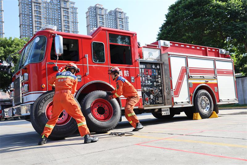訓練場上,消防指戰(zhàn)員戰(zhàn)高溫、迎酷暑,充分發(fā)揮廈門消防“特別能吃苦、特別能守紀、特別能戰(zhàn)斗、特別能奉獻”的四特精神,以“不服輸、勇爭先”的斗志投入備戰(zhàn),從手持無齒鋸在燈泡上面切割鋼絲的分毫掌控,到掛鉤梯“飛檐走壁”攀登高樓的分秒必爭,從手提兩盤水帶沖過獨木橋的速度比拼,到再到云梯車空中射水打靶的精準較量,每個科目均以“高標準、嚴要求”進行考核。