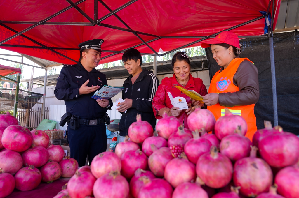 10月12日,新疆維吾爾自治區(qū)葉城縣伯西熱克鎮(zhèn)派出所深入踐行新時(shí)代“楓橋經(jīng)驗(yàn)”,組織“石榴大媽”“石榴義警”等走進(jìn)轄區(qū)石榴園區(qū)、流動(dòng)擺攤路段、合作社及打包點(diǎn)等地,開(kāi)展常態(tài)化巡邏防控、安全隱患排查、安防普法宣傳和矛盾糾紛調(diào)處工作。民警與義警向群眾講解防盜防騙、交通安全等知識(shí),及時(shí)掌握社情民意,化解潛在風(fēng)險(xiǎn),用實(shí)際行動(dòng)守護(hù)群眾生命財(cái)產(chǎn)安全。