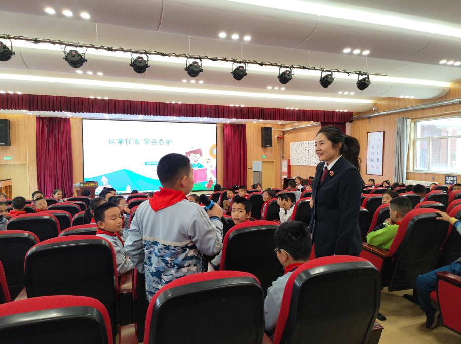 圖為“流動法律超市”開進(jìn)烏達(dá)區(qū)團結(jié)路小學(xué),向?qū)W生們開展法治宣傳活動。