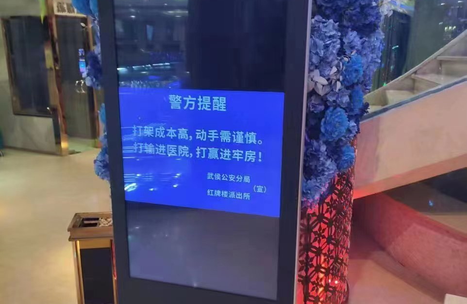 截至目前,紅牌樓派出所的此輪宣防工作已經(jīng)覆蓋了轄區(qū)內(nèi)237家?jiàn)蕵?lè)場(chǎng)所,甚至所有KTV的開(kāi)機(jī)畫(huà)面都已經(jīng)換成了“嚴(yán)禁打架斗毆”等相關(guān)內(nèi)容,提醒消費(fèi)者文明飲酒、理性止紛,提升市民群眾的守法自覺(jué)和防護(hù)意識(shí),為平安蓉城加碼助力。