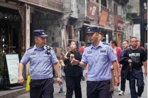 “小吃街游客堵起了......”10月1日當天下午4點過,熊建接到分局情指中心指令,第一時間帶領輔警趕到現(xiàn)場開展人流疏導,幾分鐘后正在附近巡邏的另兩組警力也趕了過來,和熊建等人一起很快疏通了人流,恢復了現(xiàn)場秩序。像這樣的突發(fā)情況,在國慶長假的錦里景區(qū)內每天都會上演很多次,而依托5G執(zhí)法記錄儀和“3M可視化”應用系統(tǒng),巡邏執(zhí)勤警力總能第一時間趕到現(xiàn)場協(xié)力開展工作,高效妥善處置、維護景區(qū)秩序。