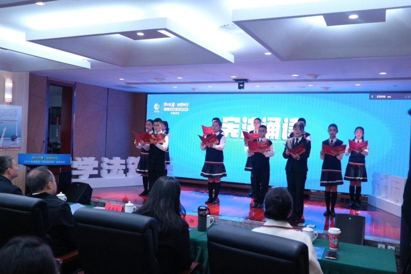 主題活動在學(xué)生代表們憲法誦讀中拉開序幕,以此弘揚(yáng)憲法精神,增強(qiáng)學(xué)生憲法意識,為推進(jìn)全面依法治區(qū)營造了濃厚的法治氛圍。