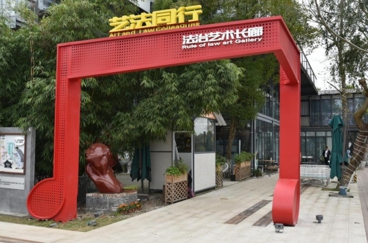 川音藝谷法治文化體驗(yàn)基地位于新都區(qū)石板灘街道韓娥社區(qū),基地以做實(shí)普法體驗(yàn)場(chǎng)景、做強(qiáng)法治藝創(chuàng)產(chǎn)業(yè)、做精藝創(chuàng)法律服務(wù)、做優(yōu)園區(qū)法治化營(yíng)商環(huán)境為抓手,積極探索“守法普法”的新模式?;亻T頭采用二八音樂符號(hào)藝術(shù)變型設(shè)計(jì),突出普法抓住“關(guān)鍵少數(shù)”。法治雕塑廣場(chǎng)采用經(jīng)典法治故事雕刻作品,展現(xiàn)民法典基本原則理念。法治長(zhǎng)廊采用法治藝術(shù)場(chǎng)景引導(dǎo)+典型案例釋法拓展+交互教育沉浸體驗(yàn)的方式展現(xiàn)熊博士的法治人生。同時(shí),使用四川獨(dú)有物種熊貓,創(chuàng)作形象的熊貓法字LOGO;借鑒新都漢朝說唱俑,創(chuàng)作說法熊貓吉祥物。與川音藝谷項(xiàng)目的運(yùn)營(yíng)方建立合作機(jī)制,舉辦新都區(qū)法治文化作品展覽、評(píng)選活動(dòng),鼓勵(lì)創(chuàng)作具有法治內(nèi)涵的雕塑、書法、攝影、音樂等藝術(shù)產(chǎn)品作品。此外,基地布局川音藝谷法律之家,發(fā)揮社區(qū)法律顧問服務(wù)團(tuán)隊(duì)的作用,積極為項(xiàng)目建設(shè)提供合同合法性審查等法律服務(wù),為川音藝谷文創(chuàng)園建設(shè)保駕護(hù)航。基地還設(shè)立川音藝谷知識(shí)產(chǎn)權(quán)保護(hù)工作站,融合多部門的職能作用,營(yíng)造良好的國(guó)際營(yíng)商環(huán)境,增強(qiáng)藝創(chuàng)產(chǎn)業(yè)創(chuàng)作創(chuàng)新的活力。