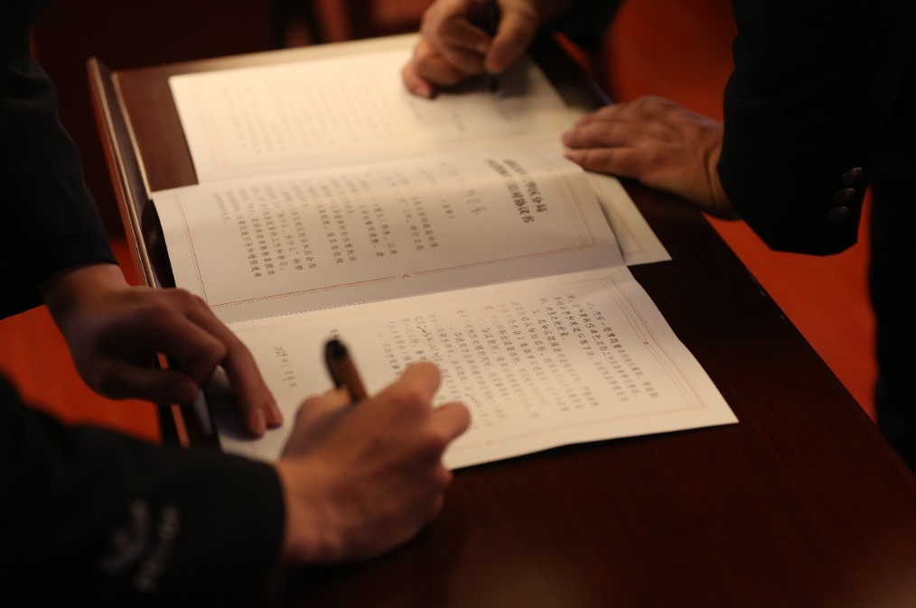 兩對師徒代表依次上臺簽訂《青年民警優(yōu)師帶徒結對協(xié)議書》,兩對師徒代表依次上臺作了表態(tài)發(fā)言。