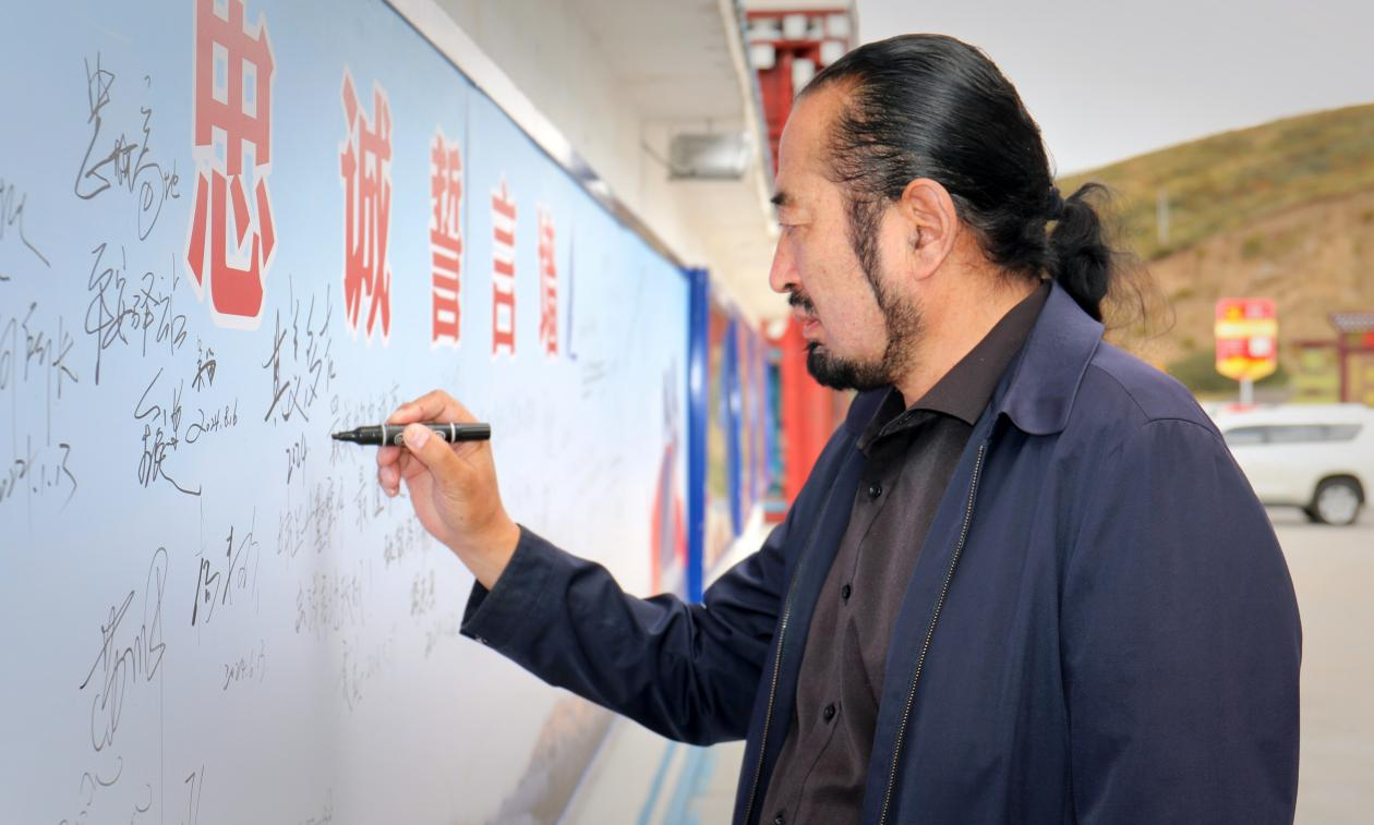 “缺少的是氧氣,擁有的是忠誠!”有感于忠誠誓言的感召,正值中秋佳節(jié)之際,剛和劉鵬一道參加學習貫徹黨的二十屆三中全會精神勞模工匠宣講活動回來的“時代楷?!逼涿蓝嗉?,途徑洛戈梁子警務(wù)站時,專門打卡致敬忠誠高地,并在忠誠誓言墻上留言,帶來了中秋的祝福。