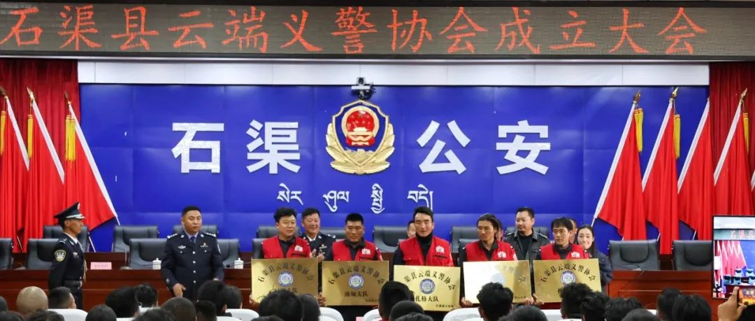 心有義,皆為警!為進(jìn)一步破解警力局限,壯大發(fā)展基層群防群治力量,不斷探索共建、共治、共享的基層社會(huì)治理新格局。9月21日,四川省甘孜州首個(gè)“云端義警協(xié)會(huì)”在海拔4200米的石渠縣正式揭牌成立。成立大會(huì)上,主持人宣布了云端義警協(xié)會(huì)第一屆理事會(huì)選舉結(jié)果和《石渠縣民政局關(guān)于同意成立云端義警協(xié)會(huì)的批復(fù)》;與會(huì)代表觀看學(xué)習(xí)了內(nèi)地義警工作經(jīng)驗(yàn)交流微視頻;新當(dāng)選的云端義警協(xié)會(huì)會(huì)長做了表態(tài)發(fā)言,并為云端義警協(xié)會(huì)及下屬各片區(qū)大隊(duì)和中隊(duì)代表授旗、授牌。