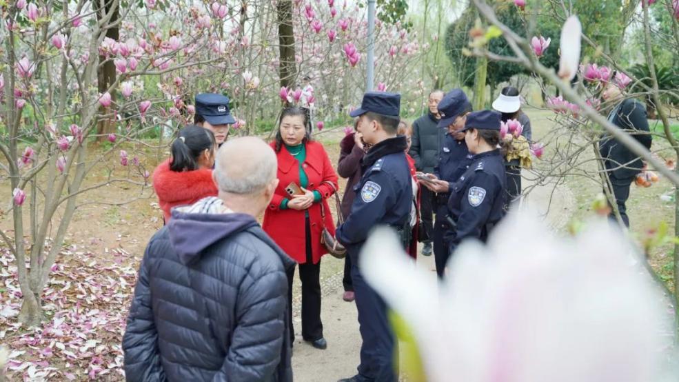 三月春風(fēng)暖,四川眉山東坡文創(chuàng)園內(nèi)游人如織。粉白花瓣紛飛間,一抹抹藏藍(lán)身影穿梭其中。春風(fēng)十里,他們用腳步丈量平安,用笑容傳遞溫暖,讓這場春日之約更添安心與溫情。
