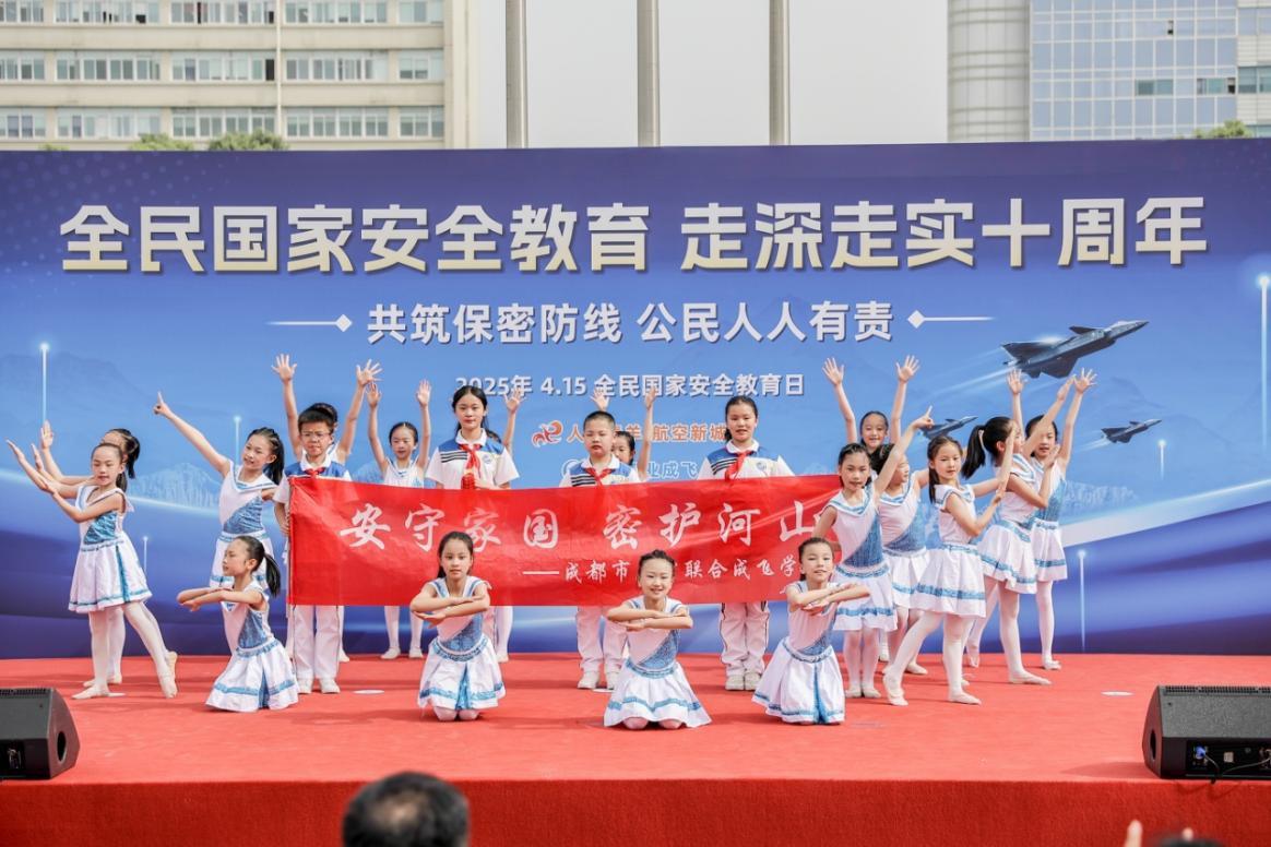 活動(dòng)中,泡桐樹成飛幼兒園的小朋友向現(xiàn)場(chǎng)領(lǐng)導(dǎo)和群眾介紹“保密安全”主題繪畫作品,生動(dòng)傳遞了兒童對(duì)國(guó)家安全的理解?;顒?dòng)現(xiàn)場(chǎng)為黃田壩街道七支“成飛嬢嬢”志愿隊(duì)伍授旗,據(jù)了解,“成飛嬢嬢”是由轄區(qū)的熱心阿姨組成的、積極投身各類公益服務(wù)的志愿者隊(duì)伍,在積極參與國(guó)家安全相關(guān)工作方面,她們將通過社區(qū)講座、發(fā)放宣傳手冊(cè)等形式,向身邊居民宣傳國(guó)家安全理念?!俺娠w嬢嬢”代表許向陽宣讀《倡議書》,倡導(dǎo)大家為社區(qū)安全和國(guó)家安全做出貢獻(xiàn)。石室聯(lián)合成飛學(xué)校學(xué)生通過精彩的文藝表演,向群眾傳遞保密意識(shí)。