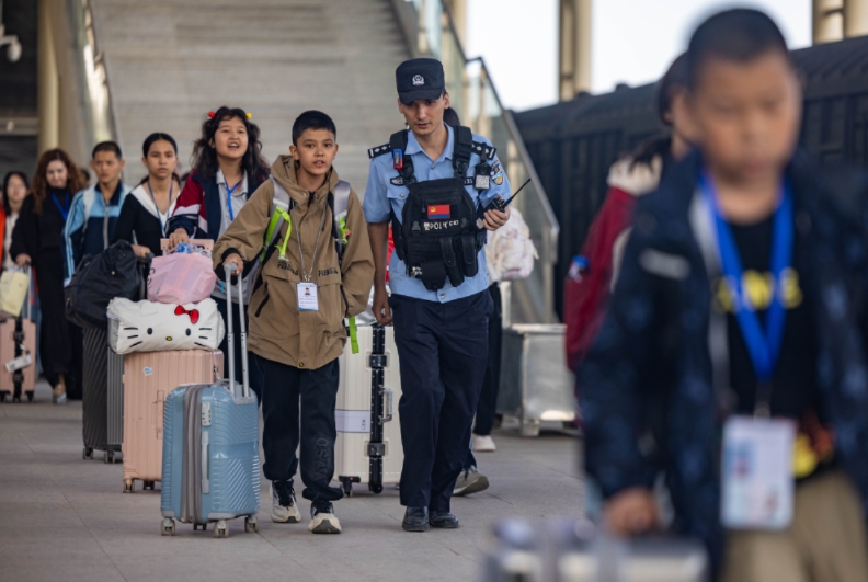 秋風(fēng)送爽,全國各地中小學(xué)陸續(xù)開學(xué),各地火車站迎來客流高峰,為保障旅客乘車安全,連日來,烏魯木齊鐵路公安局喀什公安處堅持“囤警于面、顯性用警”,嚴(yán)格落實治安管理責(zé)任,多措并舉加強(qiáng)服務(wù)保障,相繼增設(shè)“引導(dǎo)崗”“維序崗”“先鋒崗”,全面強(qiáng)化治安防控、隱患排查,以“全天候”守護(hù)、“暖心式”服務(wù)、“零距離”普法等形式,護(hù)航入學(xué)返校師生平安出行。