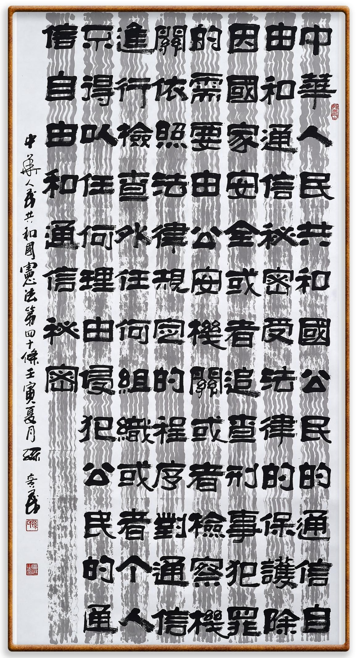 繼《中華人民共和國民法典》《中華人民共和國土地管理法》《中華人民共和國土地管理法實(shí)施條例》《中華人民共和國法律援助法》之后,法治日報(bào)社聯(lián)合北京市司法局、北京市書法家協(xié)會(huì),將筆端對(duì)準(zhǔn)《中華人民共和國憲法》和《中華人民共和國行政處罰法》。