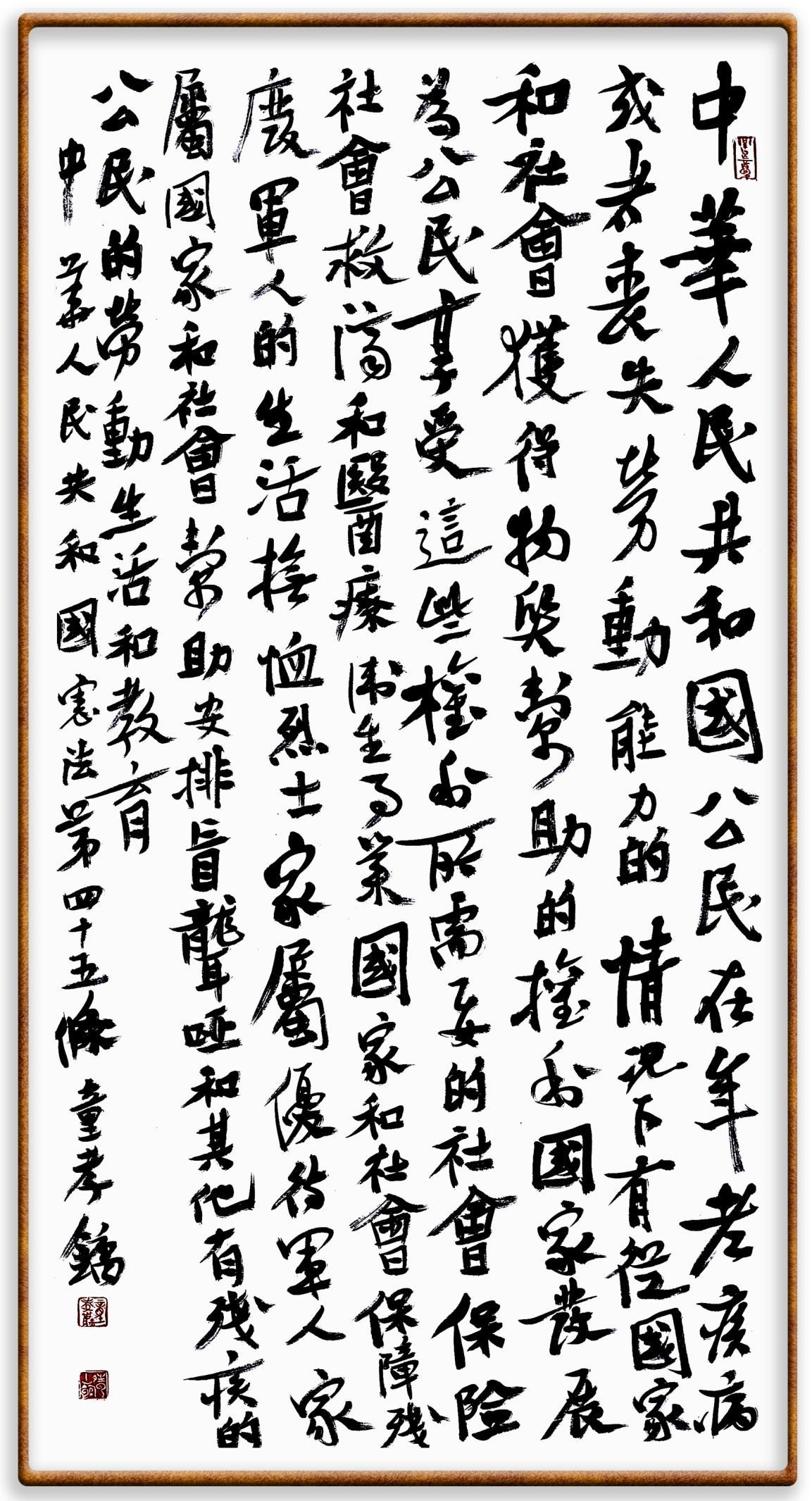 繼《中華人民共和國(guó)民法典》《中華人民共和國(guó)土地管理法》《中華人民共和國(guó)土地管理法實(shí)施條例》《中華人民共和國(guó)法律援助法》之后,法治日?qǐng)?bào)社聯(lián)合北京市司法局、北京市書(shū)法家協(xié)會(huì),將筆端對(duì)準(zhǔn)《中華人民共和國(guó)憲法》和《中華人民共和國(guó)行政處罰法》。