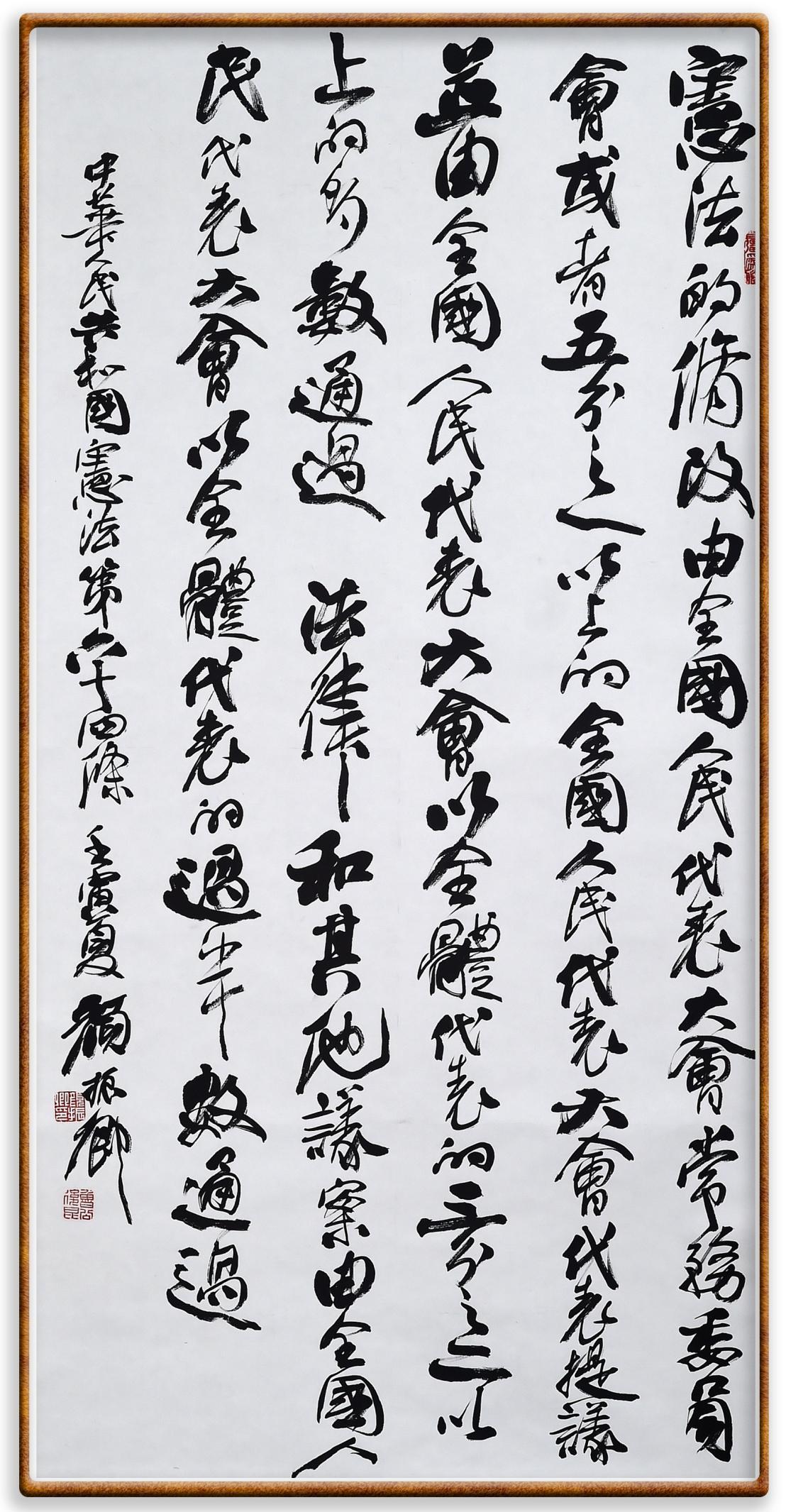 繼《中華人民共和國民法典》《中華人民共和國土地管理法》《中華人民共和國土地管理法實施條例》《中華人民共和國法律援助法》之后,法治日報社聯(lián)合北京市司法局、北京書法家協(xié)會,將筆端對準《中華人民共和國憲法》和《中華人民共和國行政處罰法》。