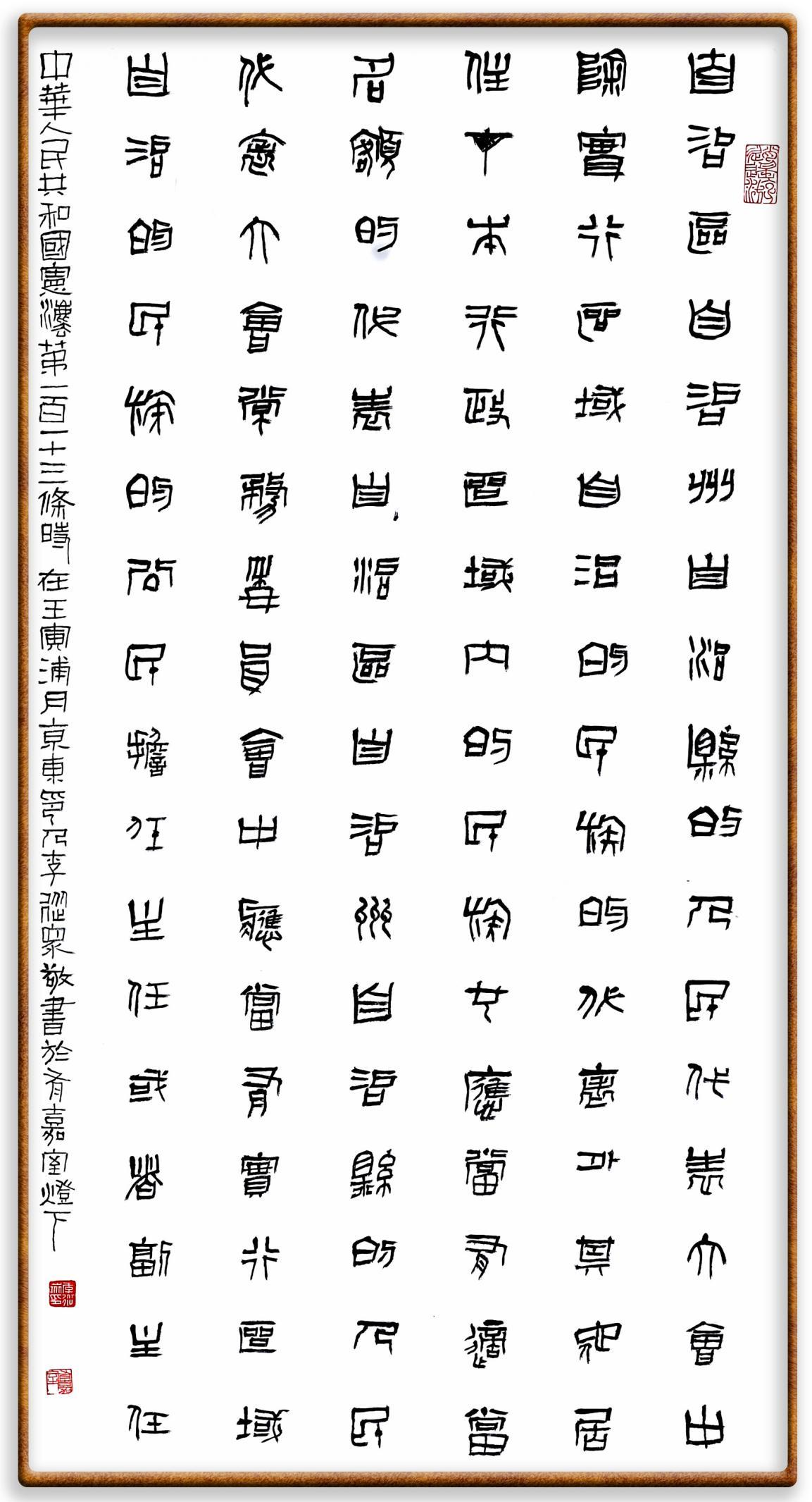 繼《中華人民共和國民法典》《中華人民共和國土地管理法》《中華人民共和國土地管理法實施條例》《中華人民共和國法律援助法》之后,法治日報社聯合北京市司法局、北京書法家協會,將筆端對準《中華人民共和國憲法》和《中華人民共和國行政處罰法》。
