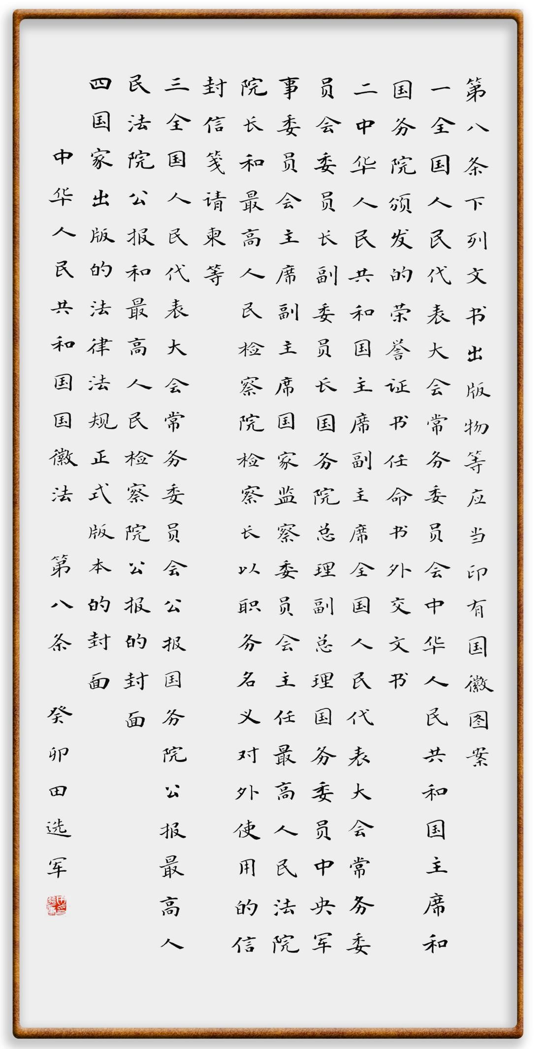 國(guó)徽法第八條 下列文書(shū)、出版物等應(yīng)當(dāng)印有國(guó)徽?qǐng)D案: