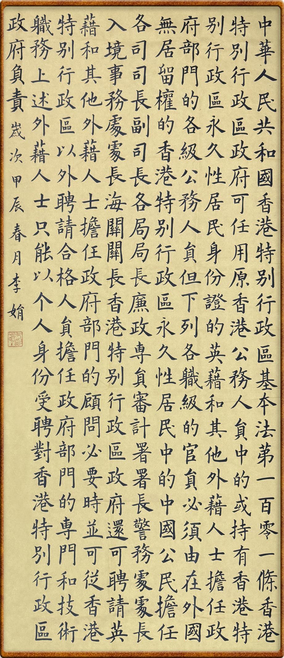 香港基本法第一百零一條 香港特別行政區(qū)政府可任用原香港公務(wù)人員中的或持有香港特別行政區(qū)永久性居民身份證的英籍和其他外籍人士擔(dān)任政府部門的各級(jí)公務(wù)人員,但下列各職級(jí)的官員必須由在外國(guó)無(wú)居留權(quán)的香港特別行政區(qū)永久性居民中的中國(guó)公民擔(dān)任:各司司長(zhǎng)、副司長(zhǎng),各局局長(zhǎng),廉政專員,審計(jì)署署長(zhǎng),警務(wù)處處長(zhǎng),入境事務(wù)處處長(zhǎng),海關(guān)關(guān)長(zhǎng)。