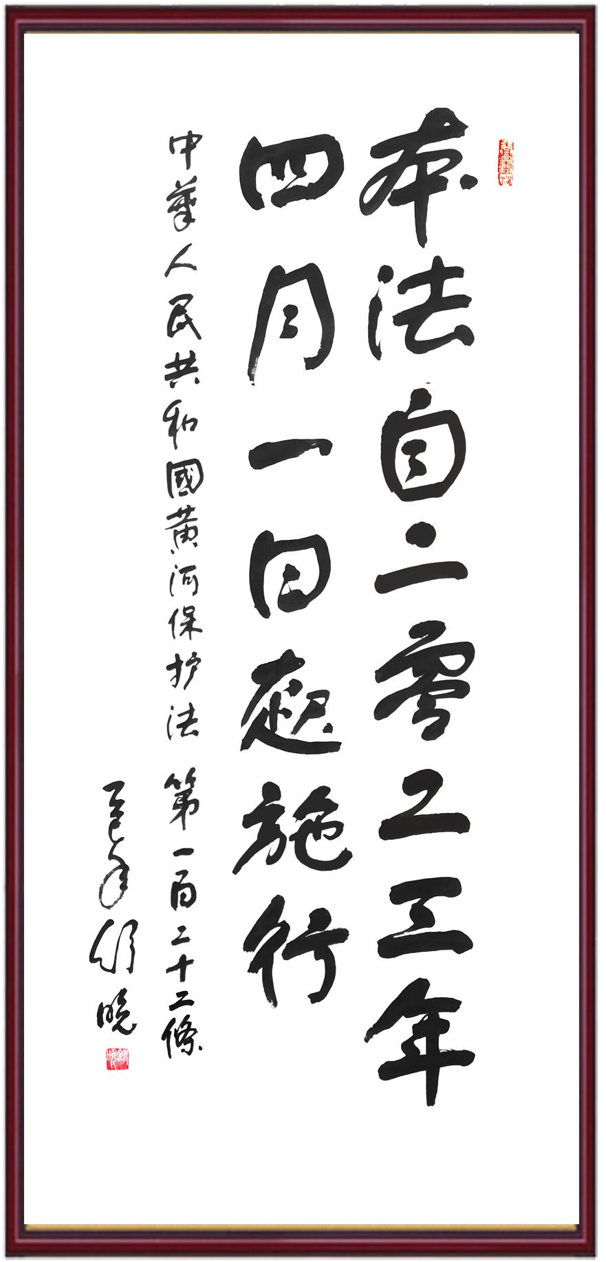 黃河寧,天下平。黃河是中華民族的發(fā)源地和搖籃,保護黃河是事關(guān)中華民族偉大復興的千秋大計?!吨腥A人民共和國黃河保護法》為推進水資源節(jié)約集約利用、保護傳承弘揚黃河文化、推動黃河流域生態(tài)保護和高質(zhì)量發(fā)展提供了有力法治保障。繼書寫《中華人民共和國民法典》《中華人民共和國憲法》《中華人民共和國澳門特別行政區(qū)基本法》《中華人民共和國香港特別行政區(qū)基本法》《中華人民共和國國旗法》《中華人民共和國國徽法》《中華人民共和國國歌法》《中華人民共和國法官法》等法律法規(guī)之后,法制日報社聯(lián)合沿黃九?。▍^(qū))司法廳、書法家協(xié)會,將筆端對準《中華人民共和國黃河保護法》。