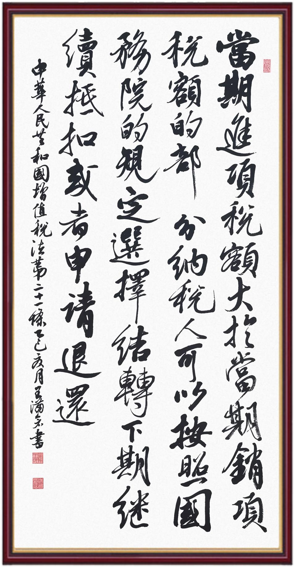 稅收一頭連著國計,一頭連著民生。全面推進依法治稅,是全面依法治國基本方略在稅收領(lǐng)域的集中體現(xiàn)。《中華人民共和國增值稅法》將于2026年1月1日起施行,對全面落實稅收法定原則、健全有利于高質(zhì)量發(fā)展的增值稅制度、規(guī)范增值稅的征收和繳納、保護納稅人合法權(quán)益具有重要意義。繼書寫《中華人民共和國民法典》《中華人民共和國憲法》《中華人民共和國國旗法》《中華人民共和國國徽法》《中華人民共和國國歌法》《中華人民共和國法官法》《中華人民共和國黃河保護法》等法律法規(guī)之后,法制日報社將筆端對準《中華人民共和國增值稅法》。