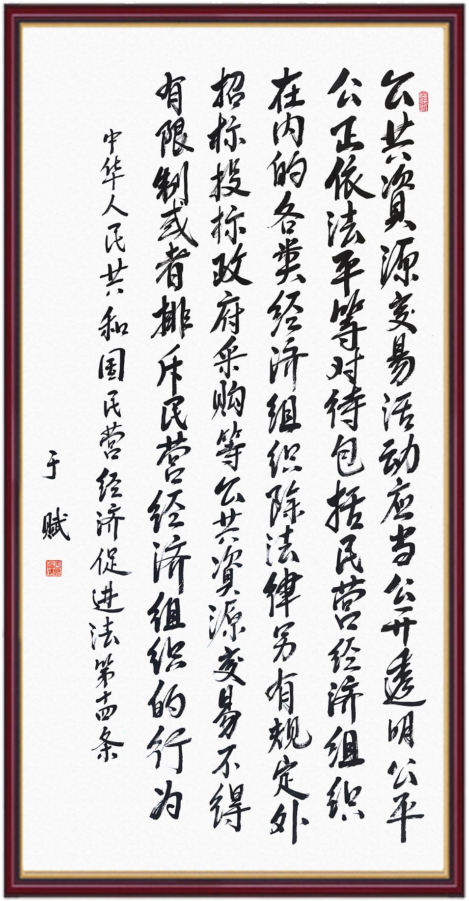 《中華人民共和國(guó)民營(yíng)經(jīng)濟(jì)促進(jìn)法》自今年5月20日起施行。作為我國(guó)首部專門關(guān)于民營(yíng)經(jīng)濟(jì)發(fā)展的基礎(chǔ)性法律,民營(yíng)經(jīng)濟(jì)促進(jìn)法將支持和保障民營(yíng)經(jīng)濟(jì)發(fā)展的法律制度融入中國(guó)特色社會(huì)主義法律體系,具有重大的法治意義,為促進(jìn)民營(yíng)經(jīng)濟(jì)持續(xù)、健康、高質(zhì)量發(fā)展提供了堅(jiān)實(shí)的法治保障。為更好地學(xué)習(xí)、宣傳、貫徹這部法律,法治日?qǐng)?bào)社聯(lián)合司法部普法與依法治理局,開展“‘書·法’系列活動(dòng)之書寫《中華人民共和國(guó)民營(yíng)經(jīng)濟(jì)促進(jìn)法》”活動(dòng)。