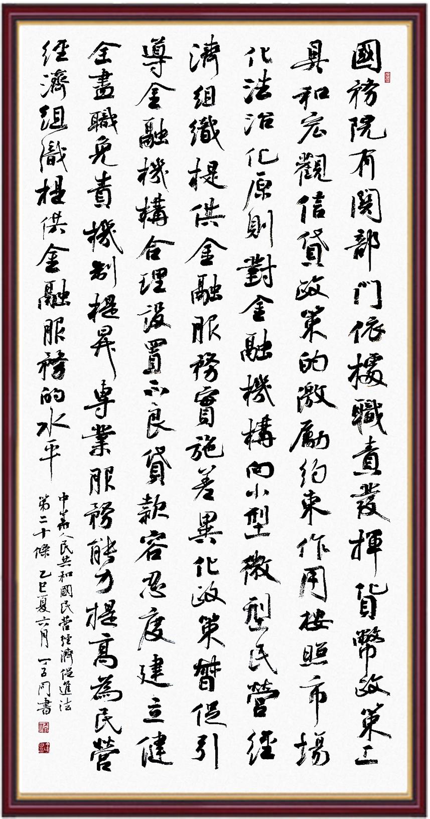 2020年7月11日,由法治日報社主辦、法報文化傳媒(北京)有限公司和北京千音文化傳媒有限公司聯(lián)合承辦的“書·法”系列活動正式啟動?!皶しā被顒又荚跒閯?chuàng)新法治宣傳教育,多開一點腦洞、多花一點心思、多出一點力量、多作一點貢獻,引領和推動更多的人拿起筆來學法、寫法,在不斷“書·法”過程中,提升自身的法治素養(yǎng),在全社會弘揚法治精神。先后書寫《中華人民共和國民法典》《中華人民共和國憲法》《中華人民共和國澳門特別行政區(qū)基本法》《中華人民共和國香港特別行政區(qū)基本法》《中華人民共和國國旗法》《中華人民共和國國徽法》《中華人民共和國國歌法》《中華人民共和國法官法》《中華人民共和國黃河保護法》等19部法律法規(guī)。