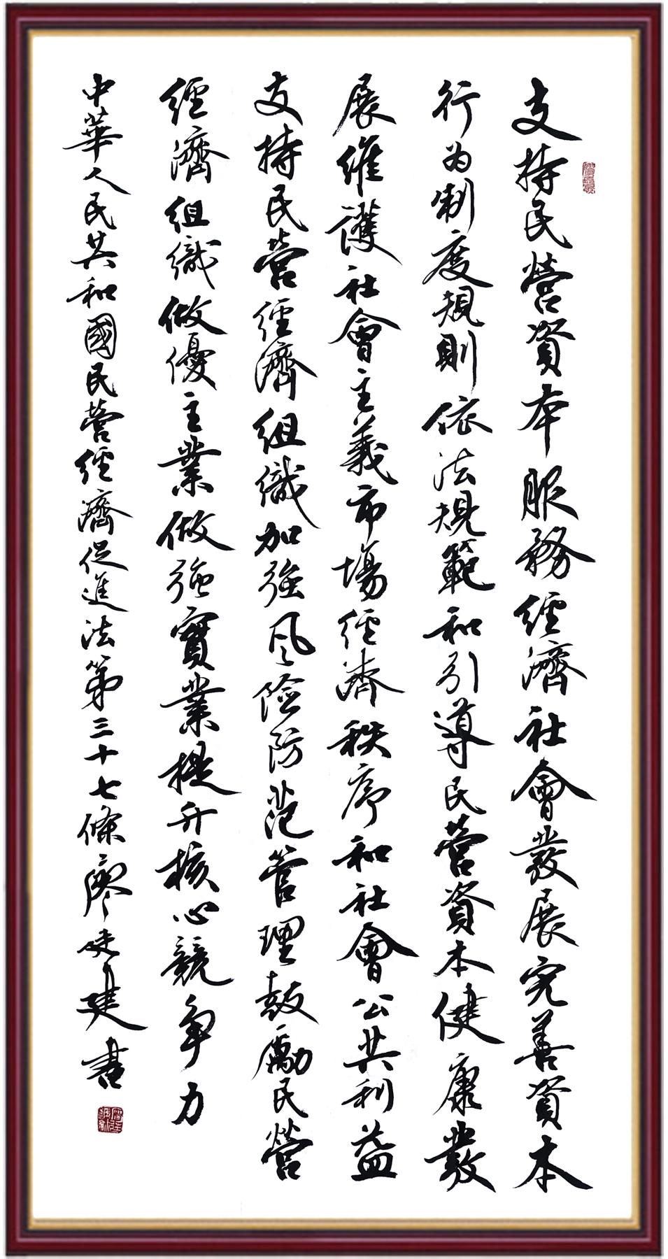 《中華人民共和國民營經(jīng)濟(jì)促進(jìn)法》自今年5月20日起施行。作為我國首部專門關(guān)于民營經(jīng)濟(jì)發(fā)展的基礎(chǔ)性法律,民營經(jīng)濟(jì)促進(jìn)法將支持和保障民營經(jīng)濟(jì)發(fā)展的法律制度融入中國特色社會(huì)主義法律體系,具有重大的法治意義,為促進(jìn)民營經(jīng)濟(jì)持續(xù)、健康、高質(zhì)量發(fā)展提供了堅(jiān)實(shí)的法治保障。為更好地學(xué)習(xí)、宣傳、貫徹這部法律,法治日?qǐng)?bào)社聯(lián)合司法部普法與依法治理局,開展“‘書·法’系列活動(dòng)之書寫《中華人民共和國民營經(jīng)濟(jì)促進(jìn)法》”活動(dòng)。