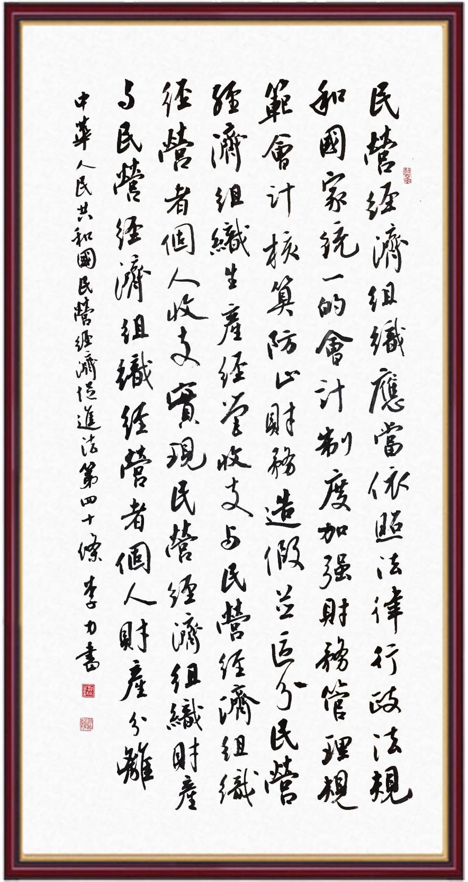 《中華人民共和國民營經(jīng)濟促進法》自今年5月20日起施行。作為我國首部專門關(guān)于民營經(jīng)濟發(fā)展的基礎性法律,民營經(jīng)濟促進法將支持和保障民營經(jīng)濟發(fā)展的法律制度融入中國特色社會主義法律體系,具有重大的法治意義,為促進民營經(jīng)濟持續(xù)、健康、高質(zhì)量發(fā)展提供了堅實的法治保障。為更好地學習、宣傳、貫徹這部法律,法治日報社聯(lián)合司法部普法與依法治理局,開展“‘書·法’系列活動之書寫《中華人民共和國民營經(jīng)濟促進法》”活動。